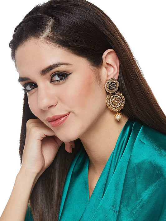 Kundan Drop Earrings for Women Traditional Gold Plated Kundan Pearl Ethnic Drop Earrings for Women and Girls