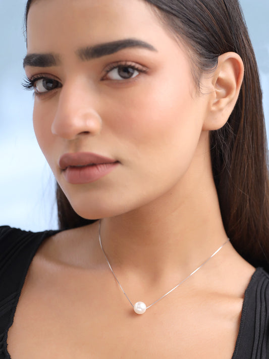 925 Sterling Silver Hallmark and Certified Purity Valentine Special Pearl Pendant with Silver Chain for Women and Girls, Silver, White, Medium
