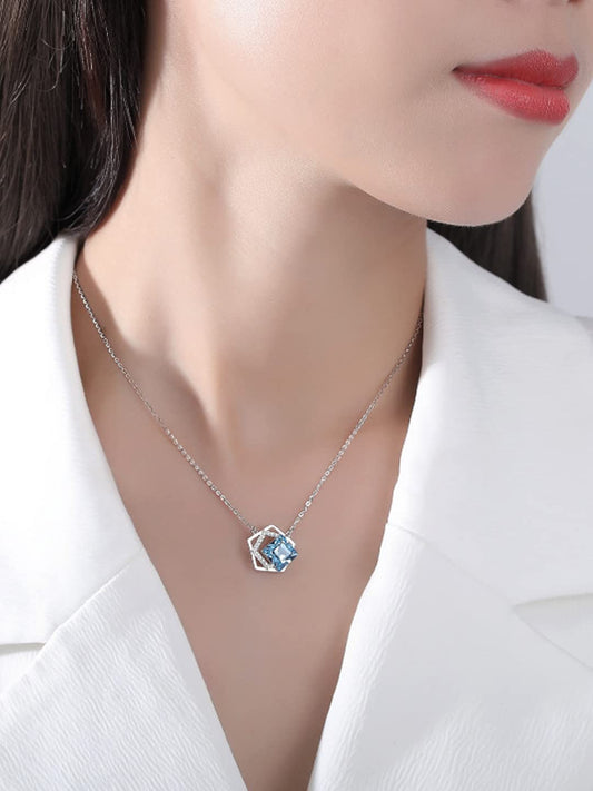 Pendant Set for Women Rose Gold Toned AD/American Dimaond Crytal Studded Square Shaped Pendant Set with Earrings for Women and Girls