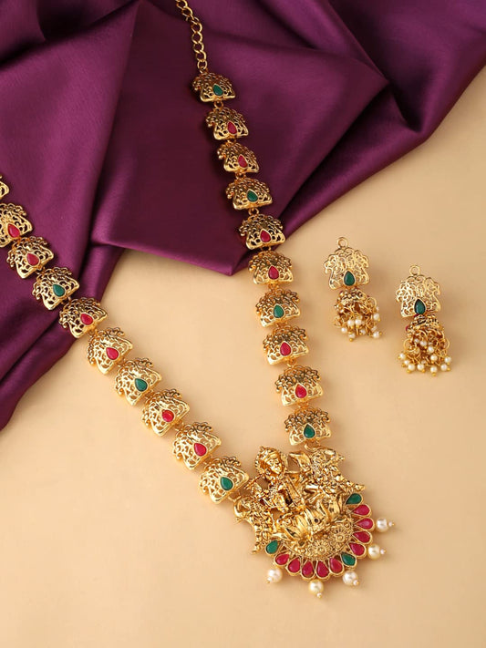 Necklace Set For Women And Girls Traditional Jewellery set for women Gold-Plated Temple Necklace Set Stone-Studded Necklace Set For Women & Girls