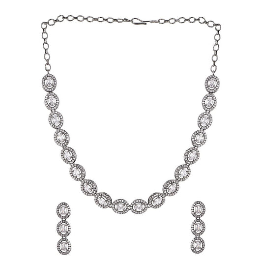 American Diamond Necklace Set For Women | White Stone Black Silver Jewellery Set For Women | Diamond Necklace Set | Birthday Gift for Girls Anniversary Gift for Wife