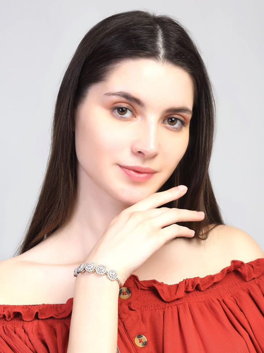 AD Bracelet for Women Rhodium-Plated White American Diamond AD Triangular Chain Bracelet For Women and Girls
