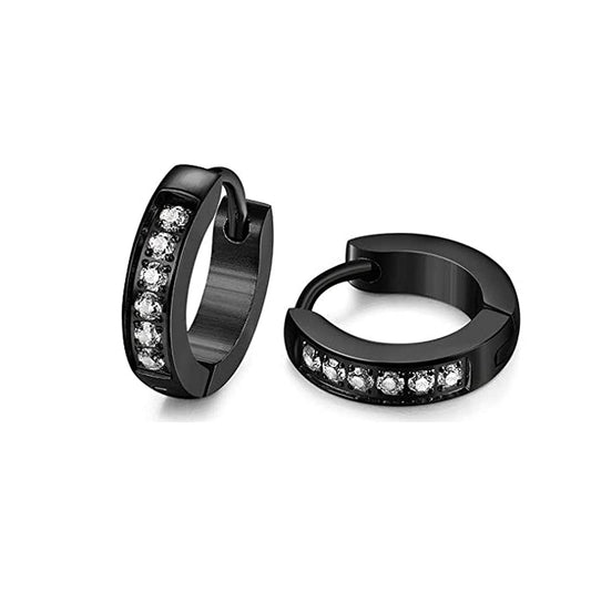 Hoop Earrings for Unisex Stainless Steel Crystal Black Hoops Earrings for Women and Men