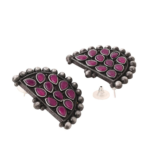 Earrings for Women and Girls Traditional White Stone Studded Silver Oxidised Studs|German Silver|Birthday Gift For girls and women Anniversary Gift for Wife