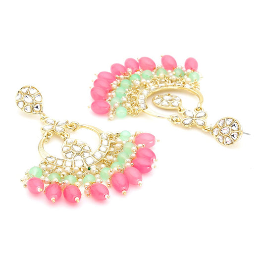 Earrings for Women Gold Toned Kundan Studded Green Beads Long Dangler Earrings for Women and Girls
