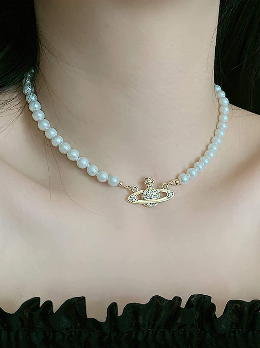 Trendy Fashion Multilayer Gold Plated Pearl Choker Necklace for Women and Girls