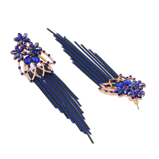 Crystal Danglers Earrings for Women Floral Shaped Crystal Blue Long Chain Dangler Earrings for Women and Girls