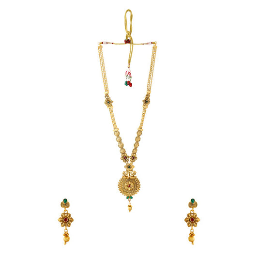 Jewellery Set For Women Gold Plated Floral Designed Traditional Rani Haar Necklace Set For Women and Girls