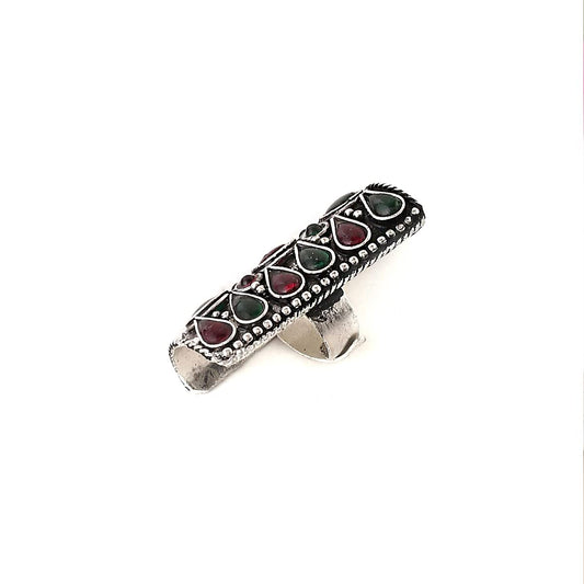 Rings For Women Silver Oxidised Multicolor Stoned Studded Long Cylindrical Shape Ring For Women and Girls