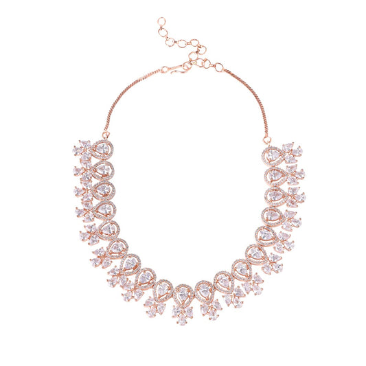 American Diamond Necklace Set For Women | White Stone Rose Gold Jewellery Set For Women | Diamond Necklace Set | Birthday Gift for Girls Anniversary Gift for Wife