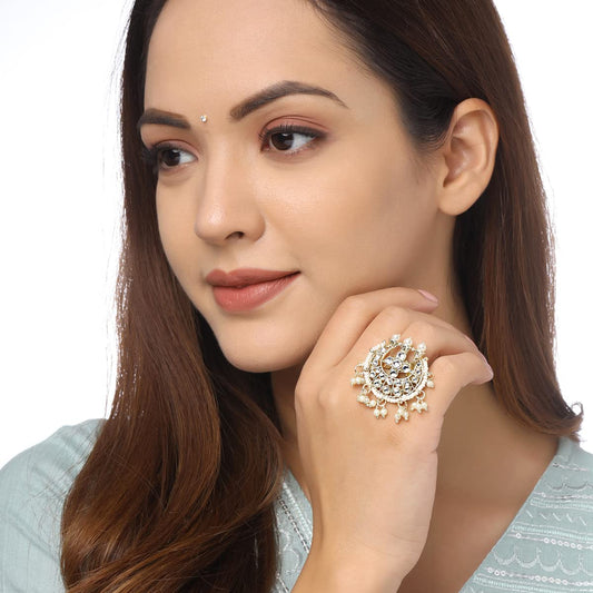 Rings for Women 2 Pcs Set of Adjustable Kundan Studded Rings for Women and Girls