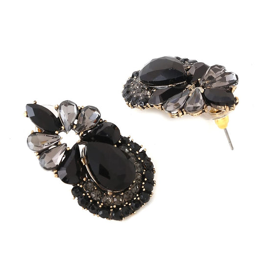 Crystal Danglers Earrings for Women Floral Shaped Crystal Black Long Chain Dangler Earrings for Women and Girls