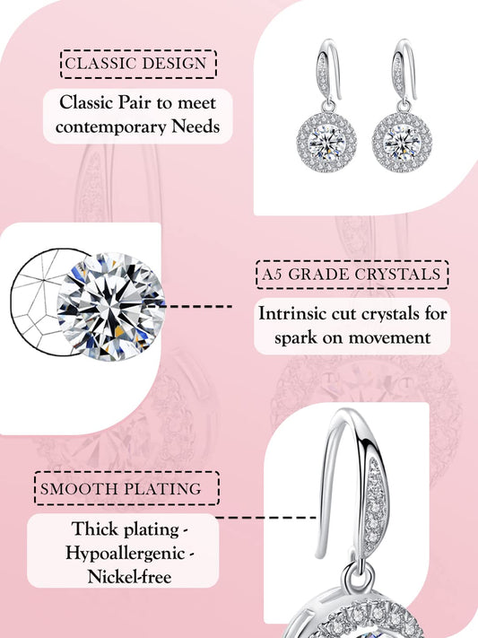 Drop Earrings for Women Fashion White Crystal Earrings for Girls | Circle Shaped Rhodium Plated Drop Earrings | Birthday Gift for Girls & Women Anniversary Gift for Wife