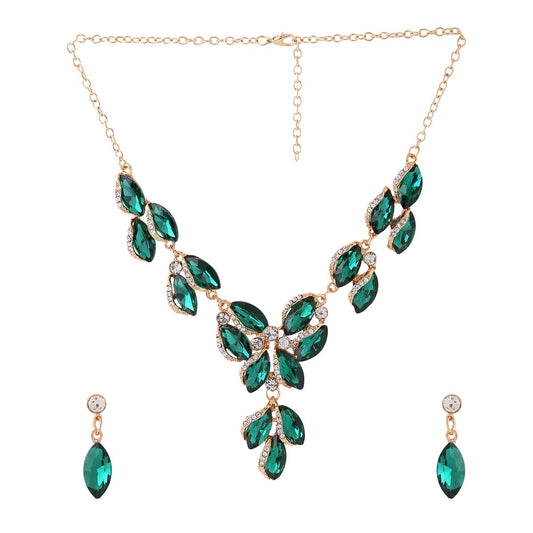 Jewellery Set For Women Dark Green Oval Shaped Crystal Studded Necklace Set For Women and Girls