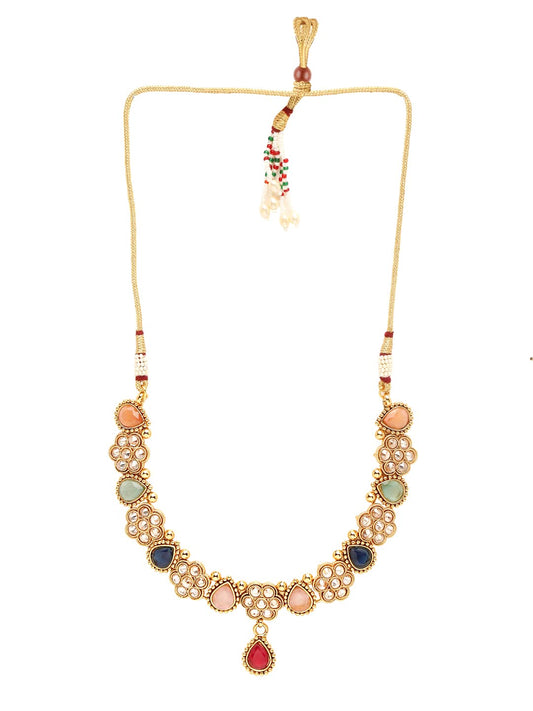 Jewellery Set for Women Gold Plated Floral Designed Tear Drop Multicolor Crystal Studded Choker Necklace Set with Earrings for Women and Girls