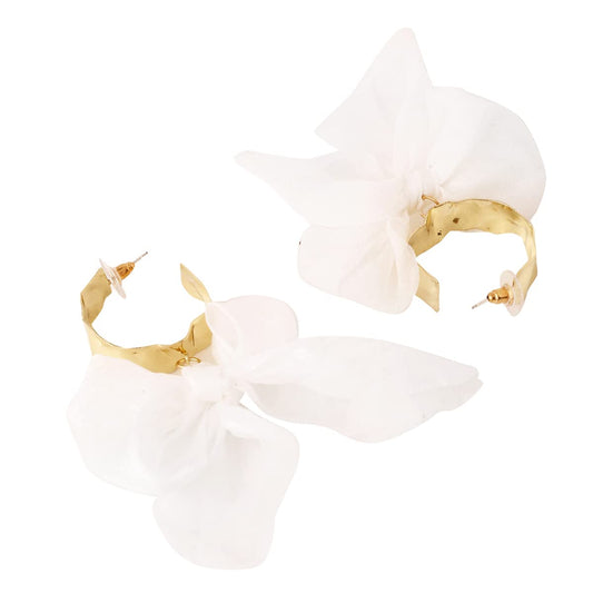 Earrings For Women White Colored Cloth Woven Bow Shaped Drop Earrings For Women and Girls