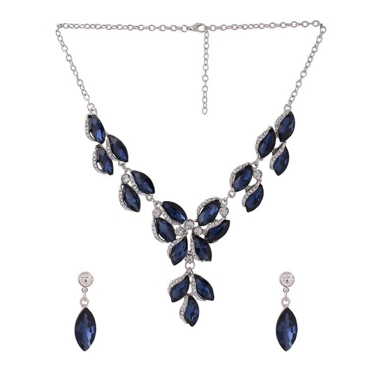 Jewellery Set For Women Dark Blue Oval Shaped Crystal Studded Necklace Set With Earring For Women and Girls
