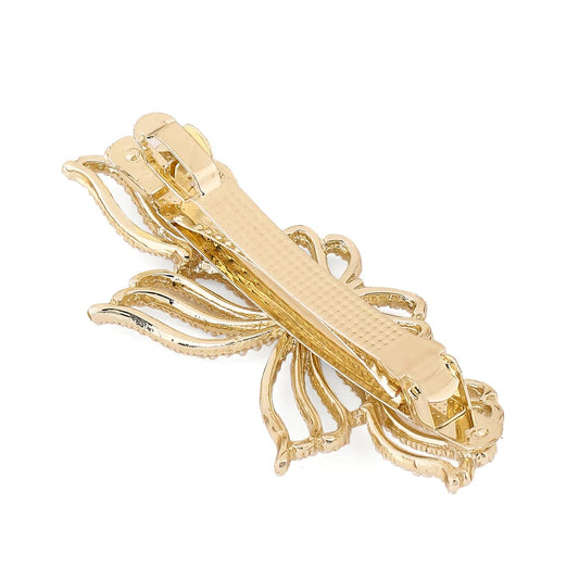 Hair Clips for Women Gold Toned Butterfly Designed White Crystal Studded French Baratte Hair Clip for Women and Girls