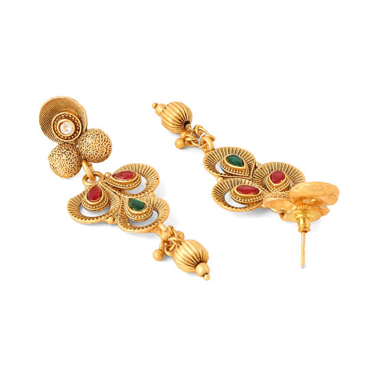 Earrings For Women Combo Pack Of 2Pairs Of Earrings Pink and Green Crystal Studded Tear Drop Shaped Drop Earrings For Women and Girls