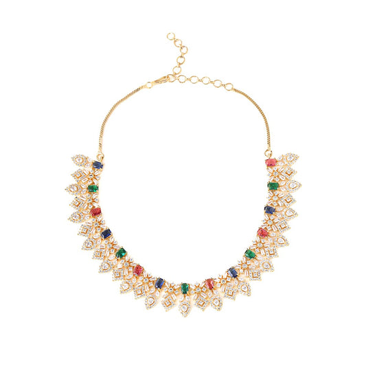 Jewellery Set for Womens Gold Plated AD/American Diamond Studded Multicolor Crystal Necklace Set with Earrings for Women and Girls
