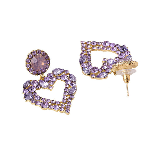 Earrings for Women and Girls Purple Crystal Drop Earrings for Women | Gold Plated Heart Shaped Drop Earrings | Birthday Gifts For Women Valentine Gift for Girls
