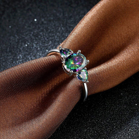 Three Stone Alloy Crystal Platinum Plated Ring for Women & Girls