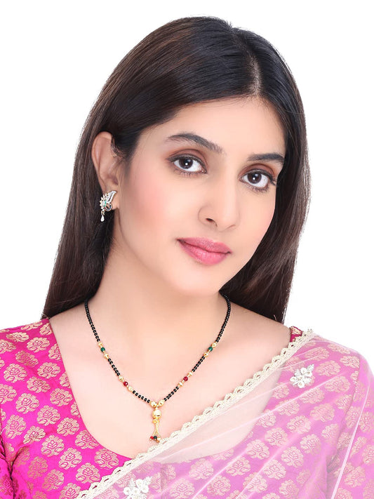 Traditional Mangalsutra: Gold Plated Black Beads Pendant Necklace | 44.5cm | Black/Multicolor