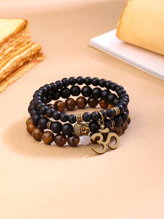 Set of 3 Layered Matte Finish Dual Colour Beads Stretchable Bracelet For Unisex Adults, Boys And Girls (Pack of 3