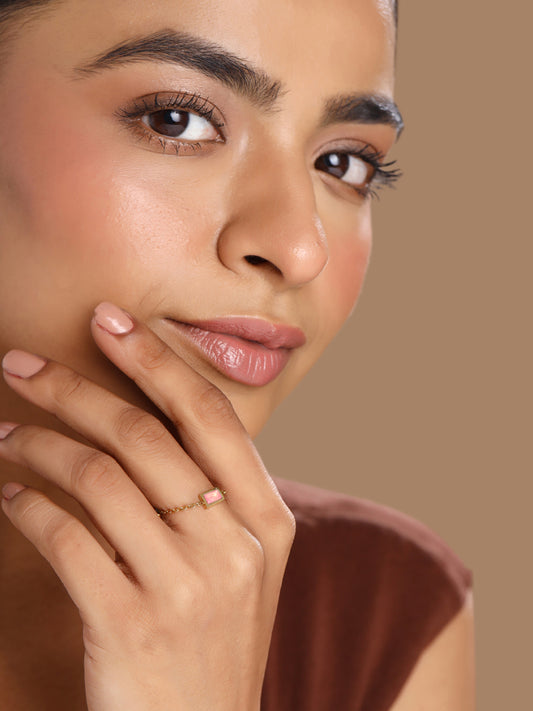Golden Rings for Women | Fashion Adjustable Chain Ring | Gold Plated Pink Stone Studded Finger Ring for Girls | Birthday Gift for Girls Anniversary Gift for Wife