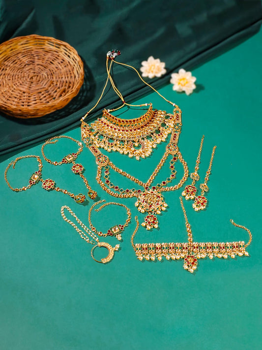 Bridal Jewellery Set For Women | Golden Wedding Necklace Set for Women | Traditional Gold Plated KundanJewellery Set for Girls | Birthday Anniversary Gift For Women