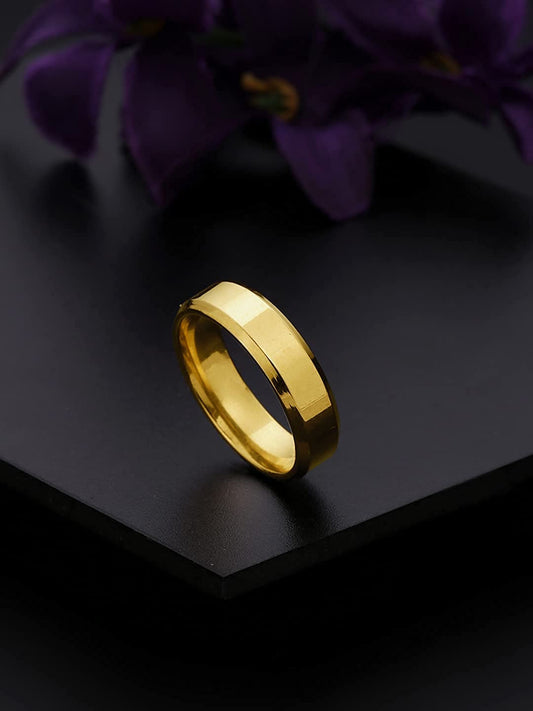Gold Toned Ring For Men | Pack of 1 Stainless Steel Band Ring | Gold Finger Ring for Boys | Ideal Gift For Men and Boys
