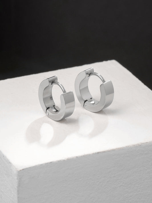 Earrings for Men and Boys | Fashion Silver toned Smooth Finished | Stainless Steel Small Huggie Hoop Earring | Accessories Jewellery for Men | Birthday Gift for Men and Boys Anniversary Gift for Husband