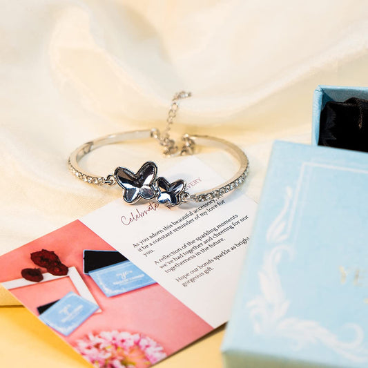 Valentine Gift for Girls Silver Plated Blue Butterfly Crystal Bracelet for Women and Girls