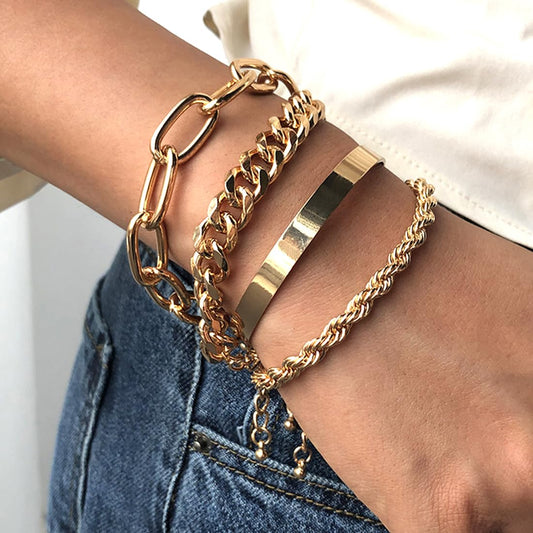 Combo Bracelets for Women 4 Pcs Gold Plated Bracelet Multilayer Stack Style Chain Bracelets Set for Women and Girls