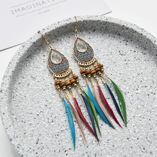 Tassel Earrings for Women Multicolor Feathers Gold Plated Long Tassel Earrings for Women and Girls