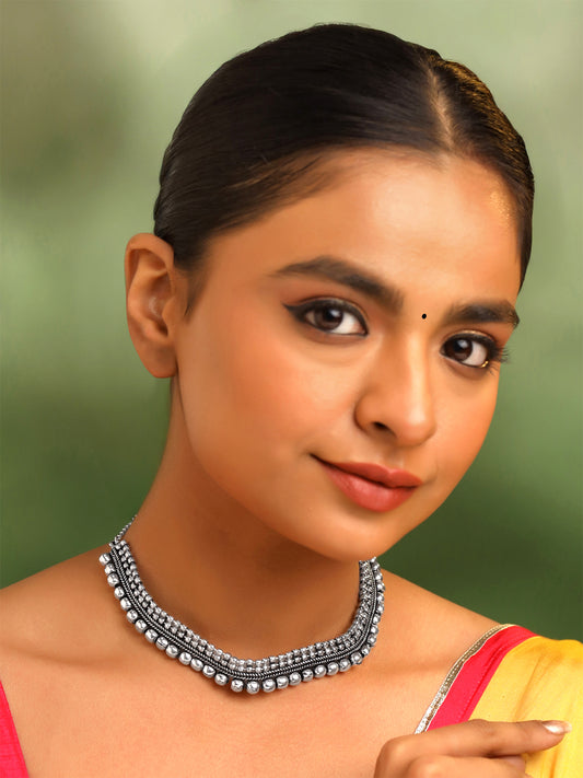 Necklace for Women Silver Oxidised Beads Studded Choker Necklace for Women and Girls