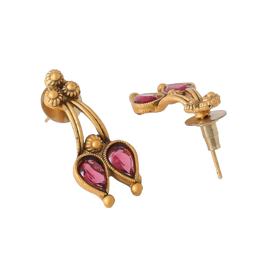 Earrings for Women and Girls | Traditional Pink Studded Stone Jhumka Earrings | Gold Plated | Leaf Shaped Jhumki | Birthday Gift for girls and women Anniversary Gift for Wife