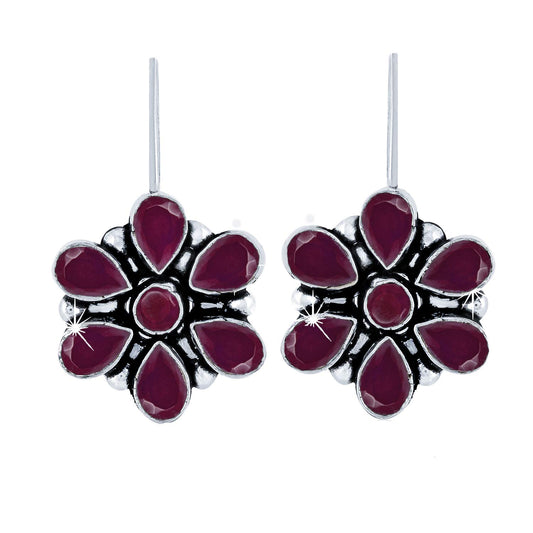 Oxidised Drop Earrings for Women Silver Oxidised Handmand Floral Charm Studded Pink Stone Drop Earrings Women And Girls.