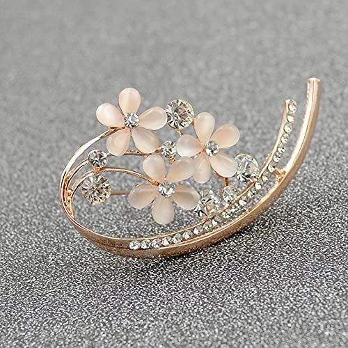 Floral Brooch for Women Elegant Rosegold Plated Opal Crystal Floral Brooch for Women and Girls