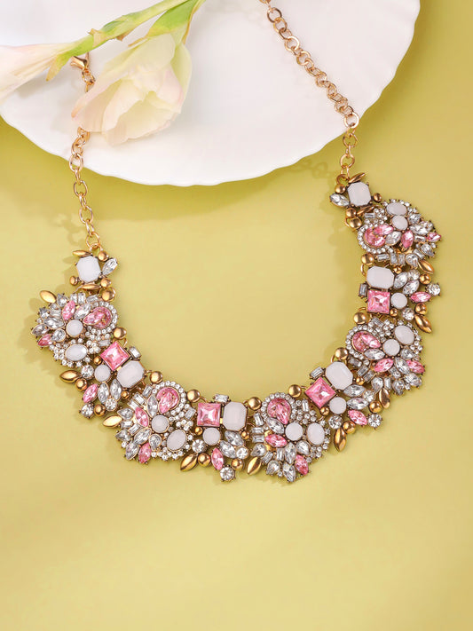 Jewellery Set for Women and Girls Crystal Jewellery Set for Women| Gold Plated Pink Stone Choker Necklace Set | Birthday Gift for girls and women Anniversary Gift for Wife