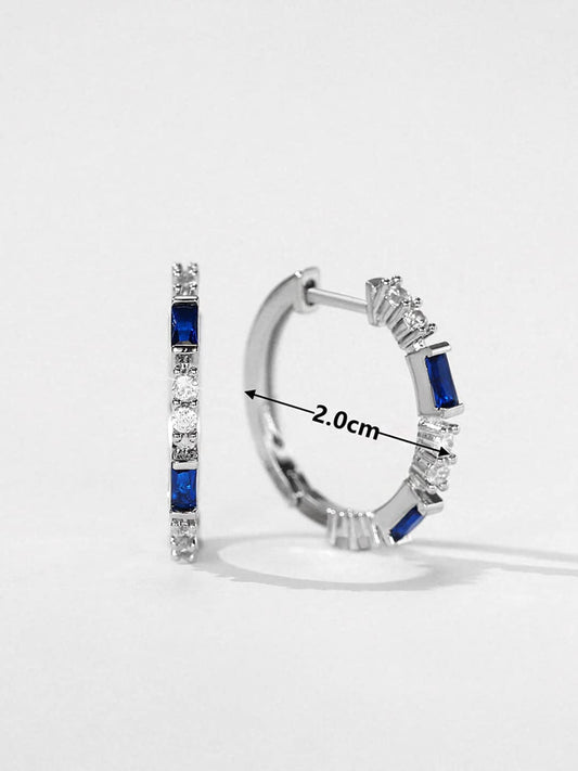 Diamond Hoop Earring with White and Blue Crystal silver -toned Glamour Spark Earring For Women & Girls