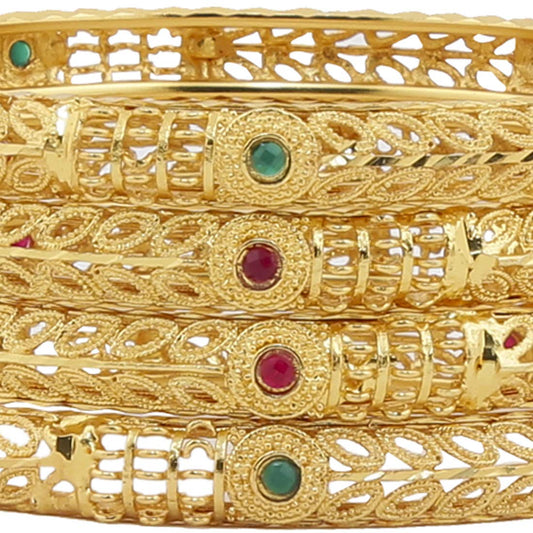 Classic Design Ethnic Look Studded Stones 4 PCs Traditional Gold Plated Bangles Set for Women and Girls (2.6)