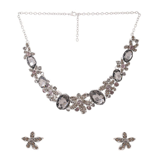 Jewellery Set For Women Silver Toned Floral Designed Crystal Necklace Set For Women and Girls