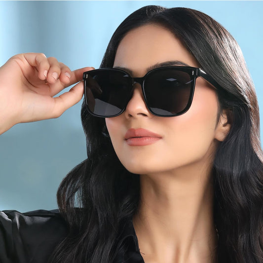 Sunglasses for Women Square Shaped Black Sunglasses for Women | Polarised Sunglasses Girls Women | Sunglasses for Women Stylish | 100% UV 400 Protection with Case