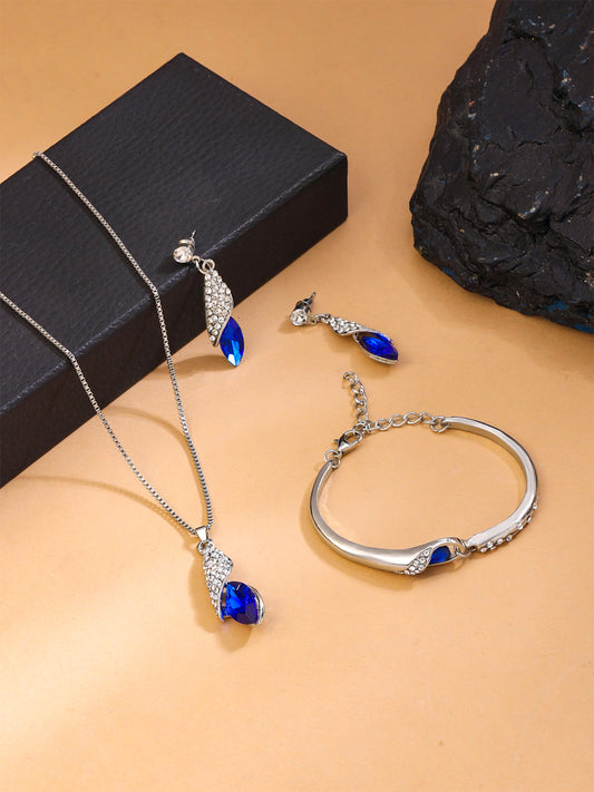 Pendant Set for Women and Girls Blue Crystal Pendant Set | Silver Tone Butterfly Pendant With Earrings & Bracelet Set | Birthday Anniversary Gift for Wife Valentine Gift for Girls