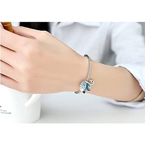 Women Crystal Bracelets | Swan Shaped Silver Plated Bracelets | Blue CZ Crystals Bracelet For Woman | Birthday Gift for Girls & Women Anniversary Gift for Wife