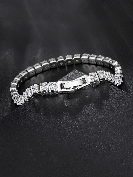 Valentine Gift for Girls Bracelet for Women and Girls | White Crystal Bracelets for Women Silver Toned Cubic Zircon Bracelet | Birthday Gift for Girls & Women Anniversary Gift for Wife