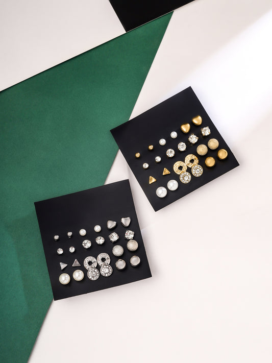 Combo Earrings For Women Gold Tone Stud and Huggie Hoop Charm Hanging Earrings Combo For Women and Girls