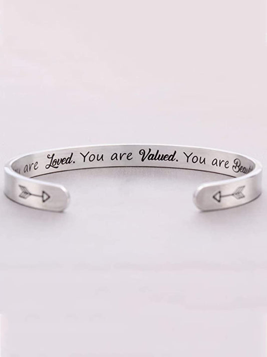 Kada Bracelet for Women Stainless Steel Engraved You are Loved,You are Valued,You are Beautiful Cuff Bracelet for Women and Girls