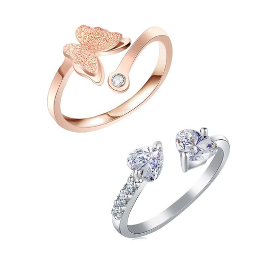 Rings for Women and Girls | 2 Pcs Combo of Butterfly and Heart Shaped Finger Ring for Women | Birthday Gift For girls and women Anniversary Gift for Wife
